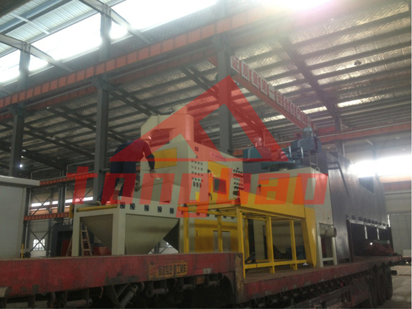 2012年11月29日 我公司為浙江奧靈格建材(系統(tǒng))有限公司生產(chǎn)的兩臺(tái)噴砂設(shè)備完成裝載,準(zhǔn)備發(fā)往海寧。這兩臺(tái)噴砂設(shè)備分別是大型輥道通過(guò)式拋丸機(jī)和輸送式自動(dòng)噴砂機(jī)。由于兩臺(tái)自動(dòng)噴砂機(jī)械較為龐大,給裝載過(guò)程增加了不少難度。