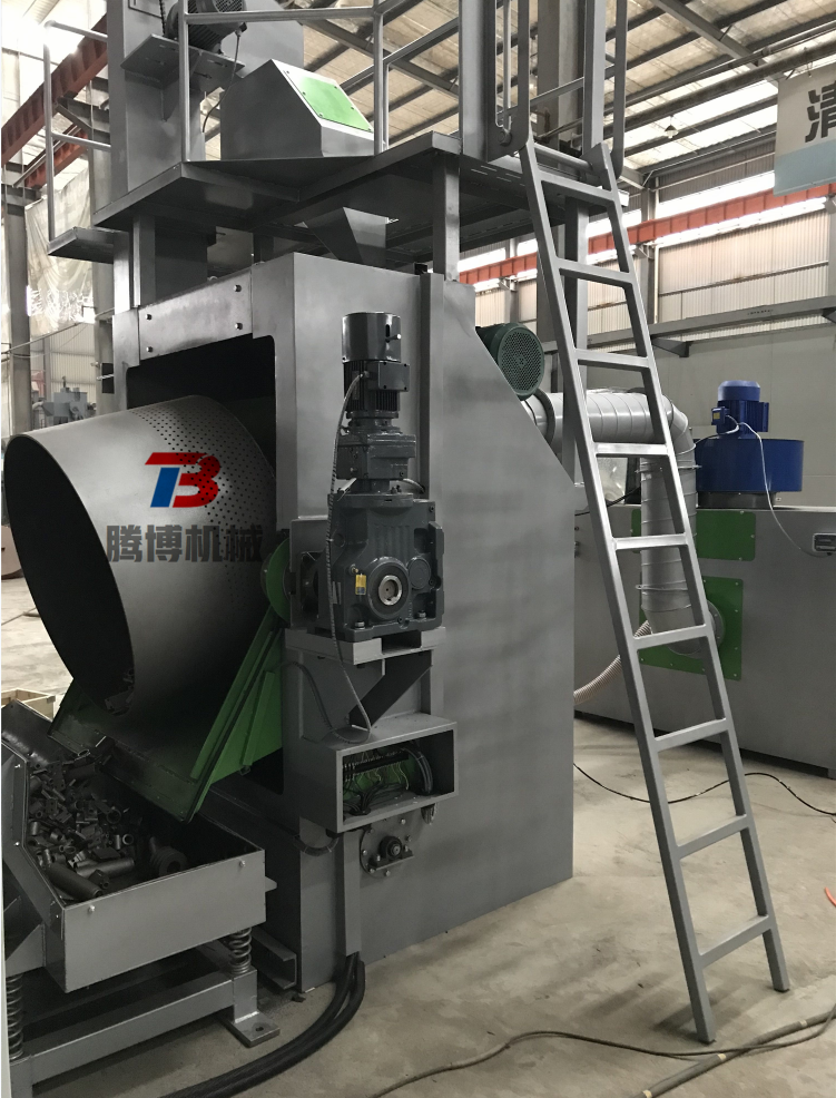 此系列噴砂機(jī)根據(jù)工藝需求配置1組*6支噴槍擺動(dòng)配砂。生產(chǎn)過程中,工件裝入工作艙中滾筒內(nèi),關(guān)上機(jī)艙門, 設(shè)定好噴砂時(shí)間,啟動(dòng)噴砂,工件就將在噴砂艙內(nèi)的履帶滾筒內(nèi)不停地翻轉(zhuǎn)及在六把噴砂槍下進(jìn)行自動(dòng)噴砂加工。
